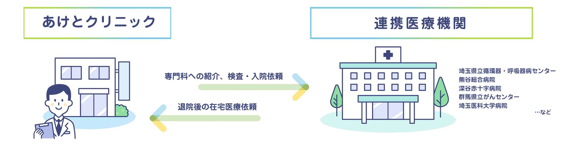 介護施設や訪問看護ステーション、訪問リハビリなどと連携し、しっかりとサポートいたします。